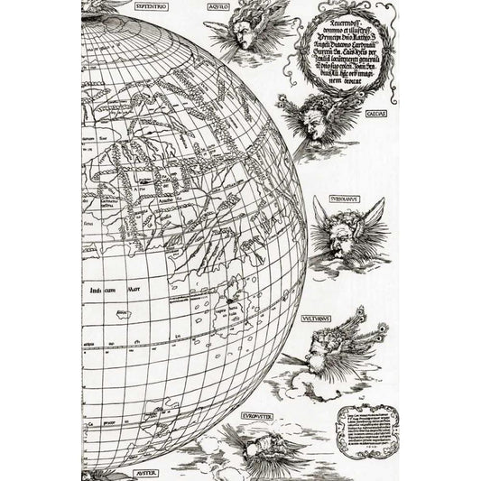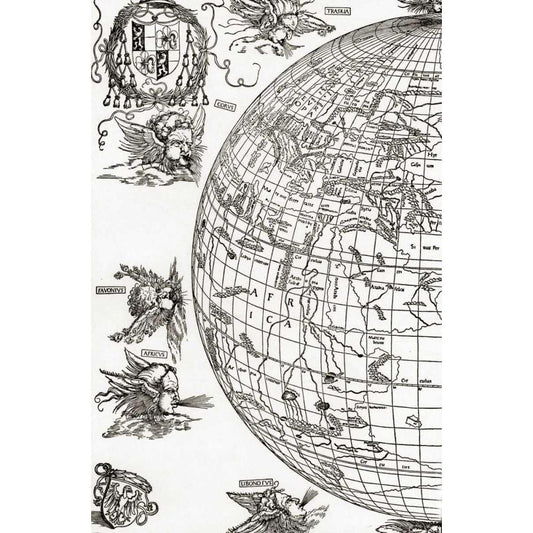 Eastern Hemisphere Of The Terrestial Globe Black Modern Wood Framed Art Print with Double Matting by Durer, Albrecht