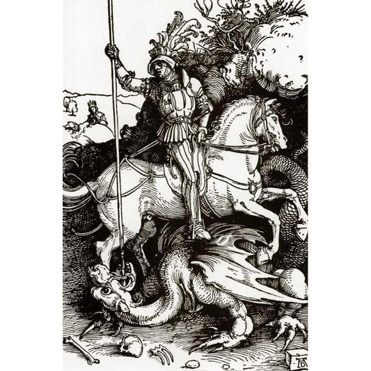 St George Black Modern Wood Framed Art Print with Double Matting by Durer, Albrecht
