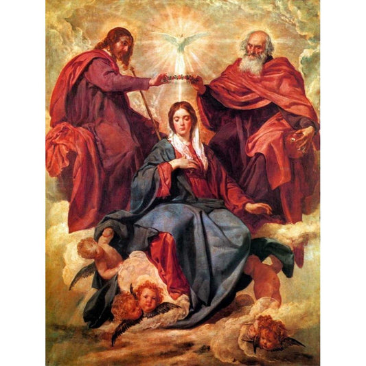 The Coronation Of The Virgin Black Modern Wood Framed Art Print with Double Matting by Velazquez, Diego