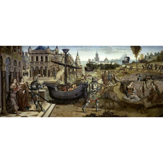 Theseus and the Minotaur Black Modern Wood Framed Art Print with Double Matting by Master of the Cassoni