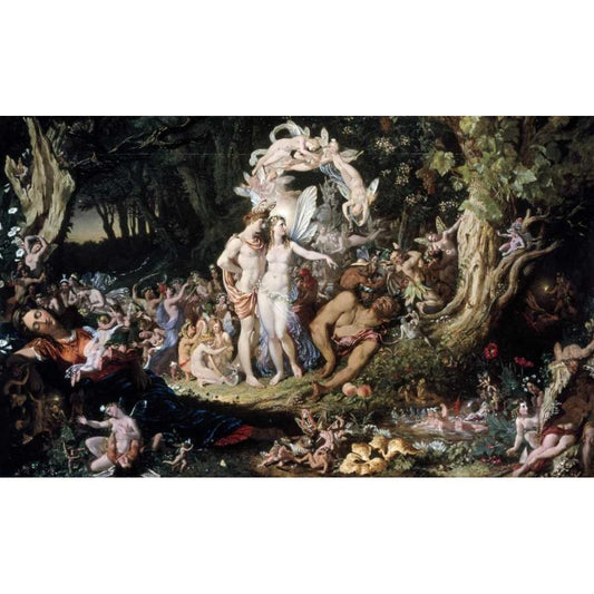 Oberon and Titania: Midsummer Nights Dream Black Modern Wood Framed Art Print with Double Matting by Paton, Joseph Noel