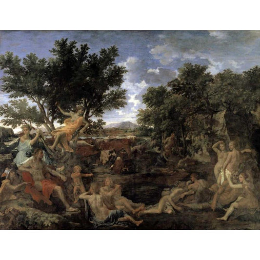 Apollo and Daphne Black Modern Wood Framed Art Print with Double Matting by Poussin, Nicolas
