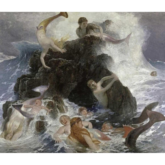 Mermaids at Play Black Modern Wood Framed Art Print with Double Matting by Bocklin, Arnold