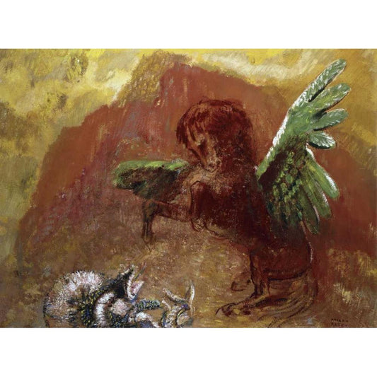Pegasus and Hydra Black Modern Wood Framed Art Print with Double Matting by Redon, Odilion
