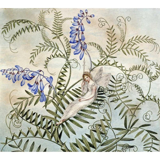 Fairies Floating Downstream In a Peapod Black Modern Wood Framed Art Print with Double Matting by Murray, Amelia Jane