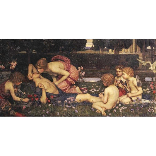 The Awakening of Adonis Black Modern Wood Framed Art Print with Double Matting by Waterhouse, John William