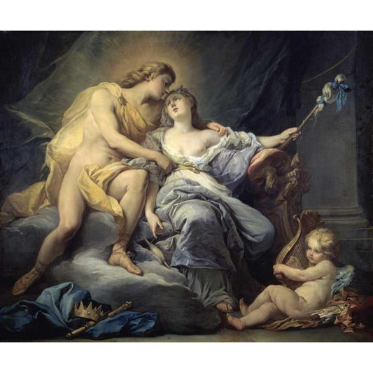 Apollo Caresses Leukothea Black Modern Wood Framed Art Print with Double Matting by Boizot, Antoine