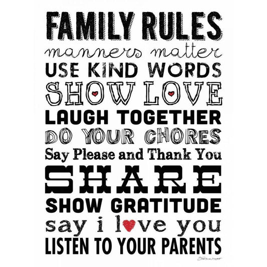 Family Rules Black Modern Wood Framed Art Print with Double Matting by Marrott, Stephanie