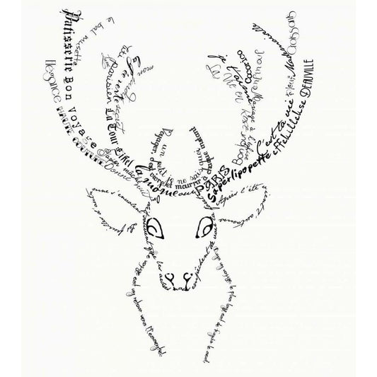 French Stag Black Black Modern Wood Framed Art Print with Double Matting by De Lauzun, Marion
