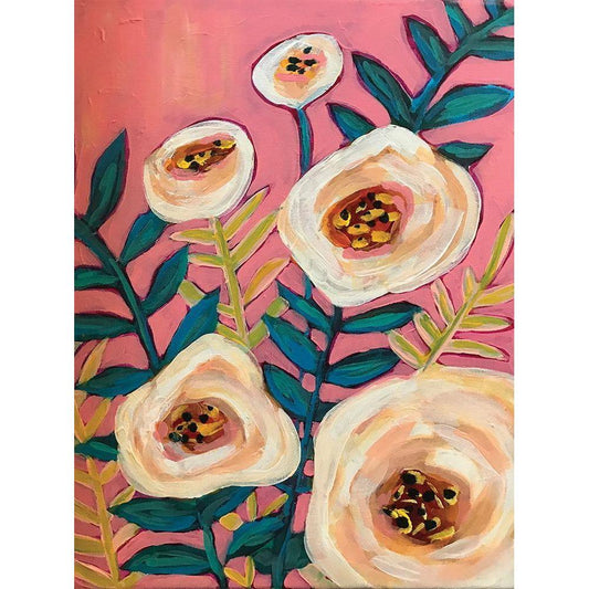 White Flowers on Pink Black Modern Wood Framed Art Print with Double Matting by Rupp, Mariah