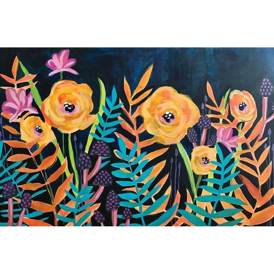 Flowers at Night Black Modern Wood Framed Art Print with Double Matting by Rupp, Mariah