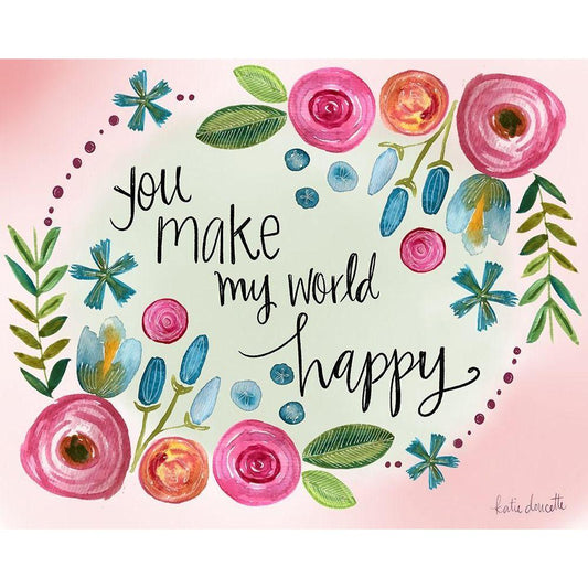Make My World Happy Black Modern Wood Framed Art Print with Double Matting by Doucette, Katie