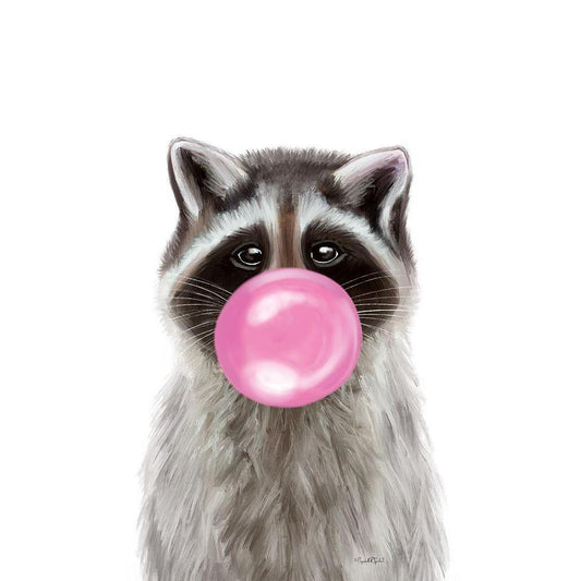 Quirky Raccoon Black Modern Wood Framed Art Print with Double Matting by Tyndall, Elizabeth