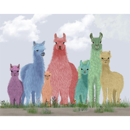 Llama Pastel Family Black Modern Wood Framed Art Print with Double Matting by Fab Funky