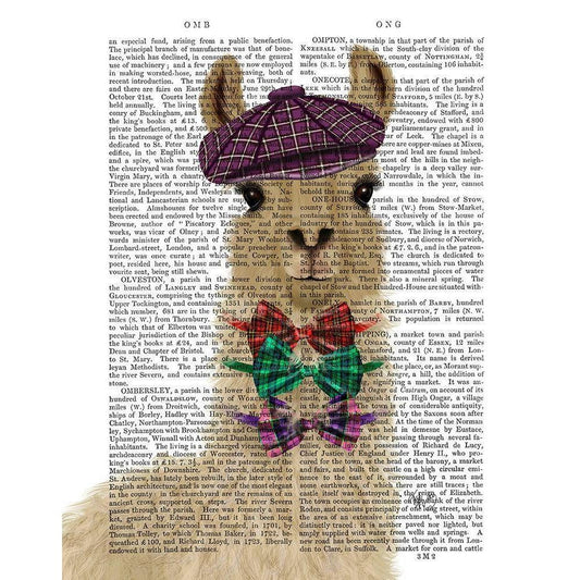 Llama with Purple Scarf, Portrait Book Print Black Modern Wood Framed Art Print with Double Matting by Fab Funky