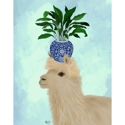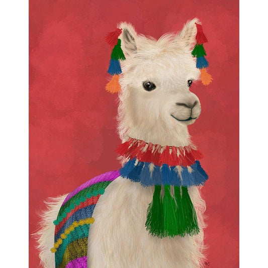 Llama Traditional 1, Portrait Black Modern Wood Framed Art Print with Double Matting by Fab Funky