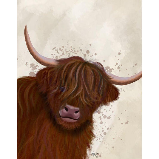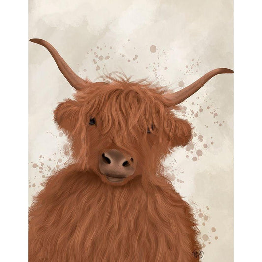 Highland Cow 8, Portrait Black Modern Wood Framed Art Print with Double Matting by Fab Funky
