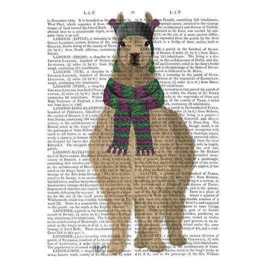 Llama with Purple Scarf, Full Book Print Black Modern Wood Framed Art Print with Double Matting by Fab Funky