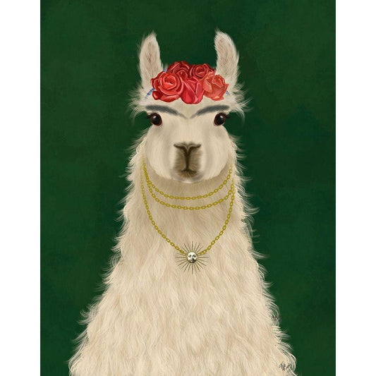Llama Traditional 2, Portrait Book Print Black Modern Wood Framed Art Print with Double Matting by Fab Funky