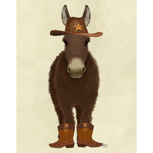Donkey Cowboy Black Modern Wood Framed Art Print with Double Matting by Fab Funky