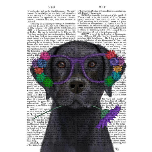 Black Labrador and Flower Glasses Book Print Black Modern Wood Framed Art Print with Double Matting by Fab Funky