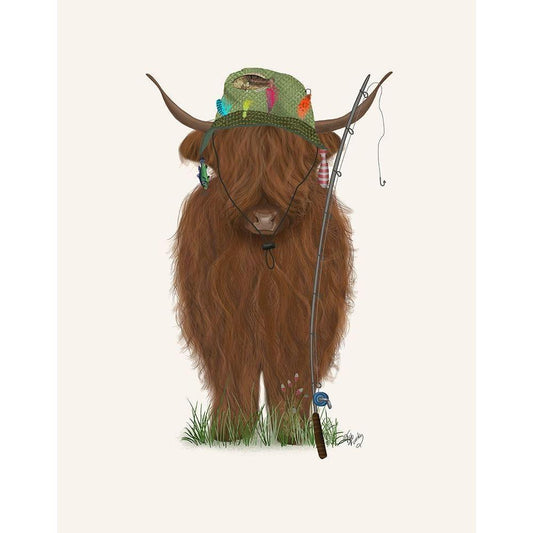 Highland Cow Fisherman Black Modern Wood Framed Art Print with Double Matting by Fab Funky
