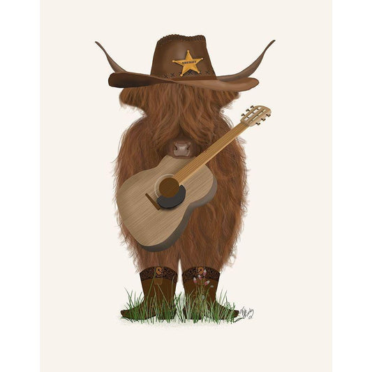 Highland Cow Fireman Black Modern Wood Framed Art Print with Double Matting by Fab Funky