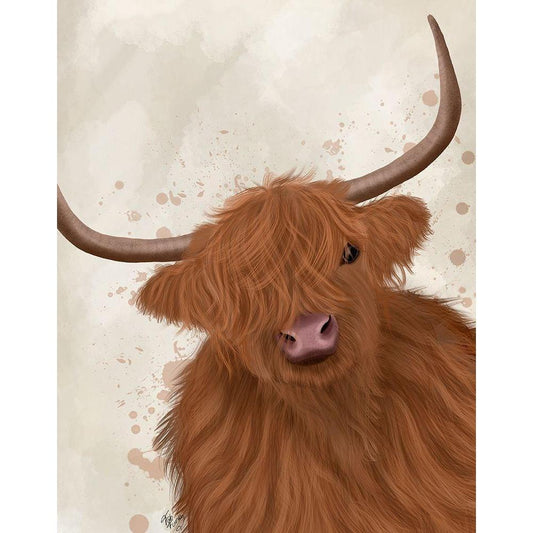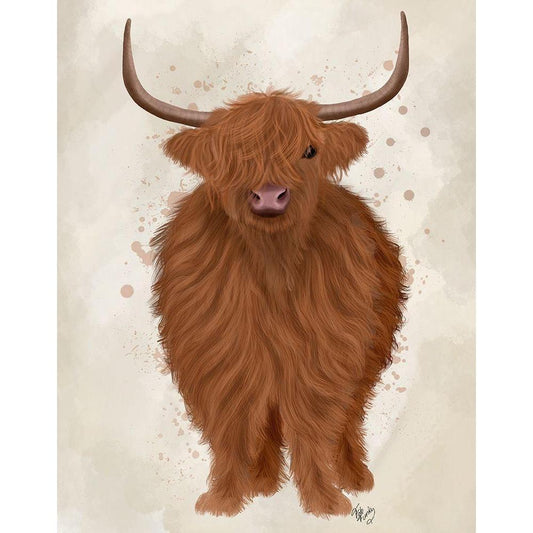 Highland Cow 1, Portrait Black Modern Wood Framed Art Print with Double Matting by Fab Funky