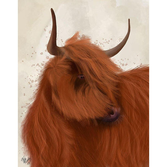Highland Cow 2, Portrait Black Modern Wood Framed Art Print with Double Matting by Fab Funky