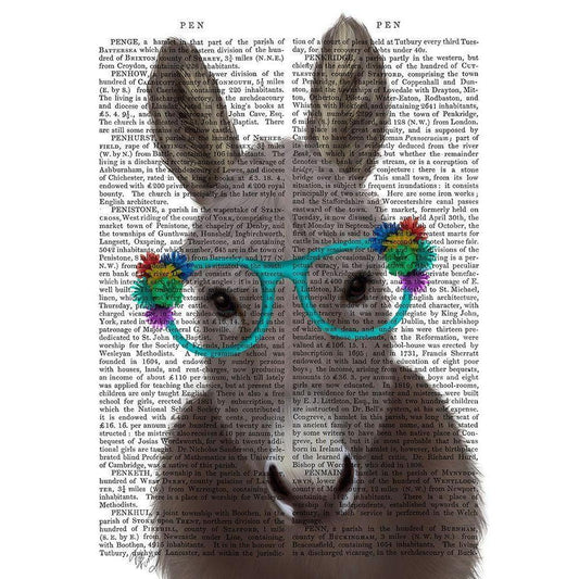 Donkey Turquoise Flower Glasses Book Print Black Modern Wood Framed Art Print with Double Matting by Fab Funky