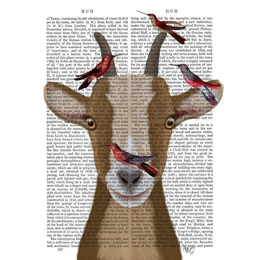 Goat and Red Birds Book Print Black Modern Wood Framed Art Print with Double Matting by Fab Funky