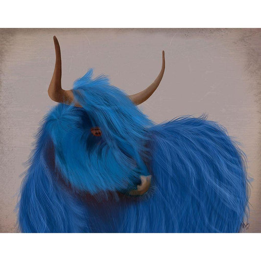 Highland Cow 2, Blue, Portrait Black Modern Wood Framed Art Print with Double Matting by Fab Funky