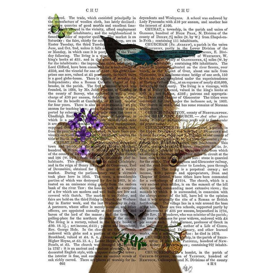 Goat and Bluebells Book Print Black Modern Wood Framed Art Print with Double Matting by Fab Funky