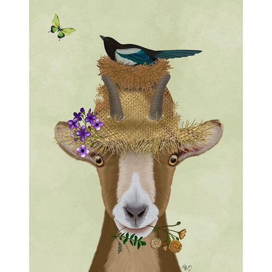 Goat In Straw Hat Black Modern Wood Framed Art Print with Double Matting by Fab Funky