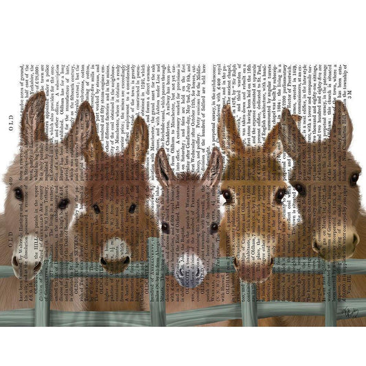 Donkey Herd at Fence Book Print Black Modern Wood Framed Art Print with Double Matting by Fab Funky