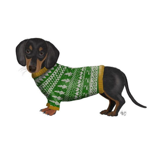 Christmas Des - Dachshund and Christmas Sweater Black Modern Wood Framed Art Print with Double Matting by Fab Funky