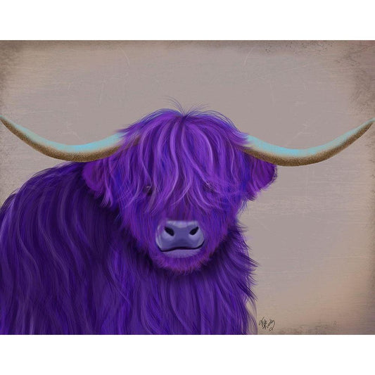 Highland Cow 5, Purple, Portrait Black Modern Wood Framed Art Print with Double Matting by Fab Funky