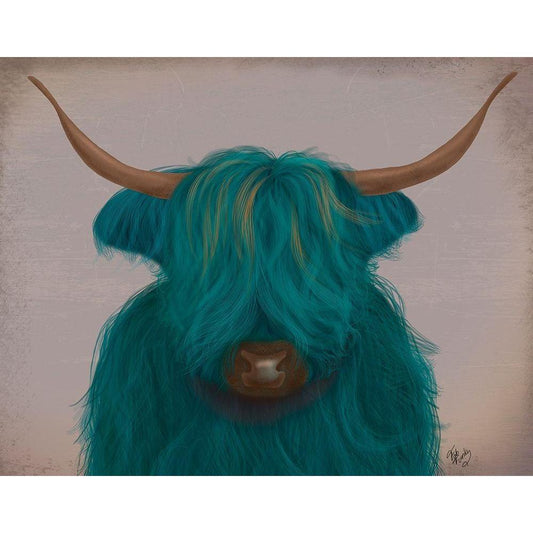 Highland Cow 3, Turquoise, Portrait Black Modern Wood Framed Art Print with Double Matting by Fab Funky