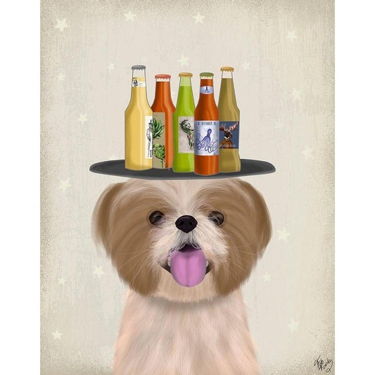 Shih Tzu Beer Lover Black Modern Wood Framed Art Print with Double Matting by Fab Funky
