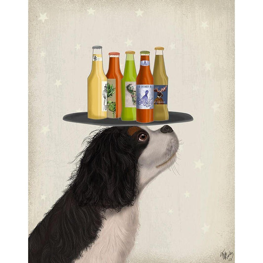 King Charles Spaniel Black White Beer Lover Black Modern Wood Framed Art Print with Double Matting by Fab Funky