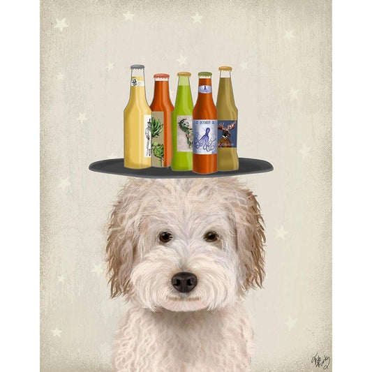 Labradoodle Cream Beer Lover Black Modern Wood Framed Art Print with Double Matting by Fab Funky