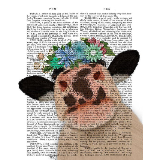 Cow with Flower Crown 2 Book Print Black Modern Wood Framed Art Print with Double Matting by Fab Funky