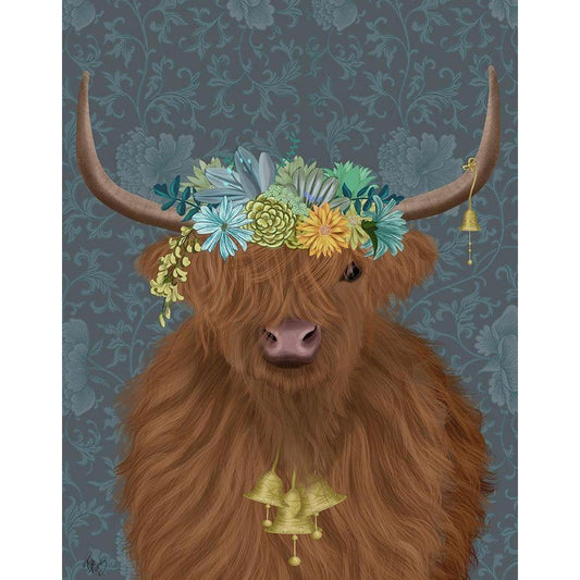 Highland Cow Bohemian 1 Book Print Black Modern Wood Framed Art Print with Double Matting by Fab Funky