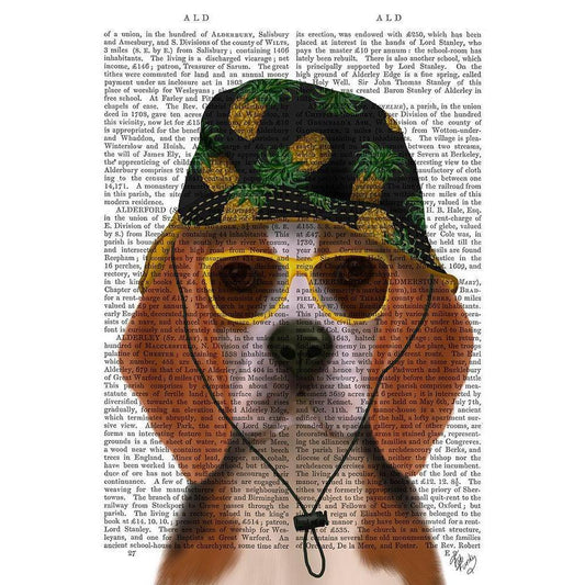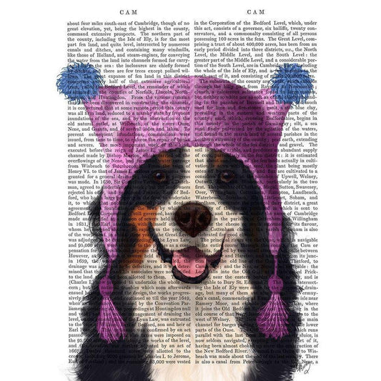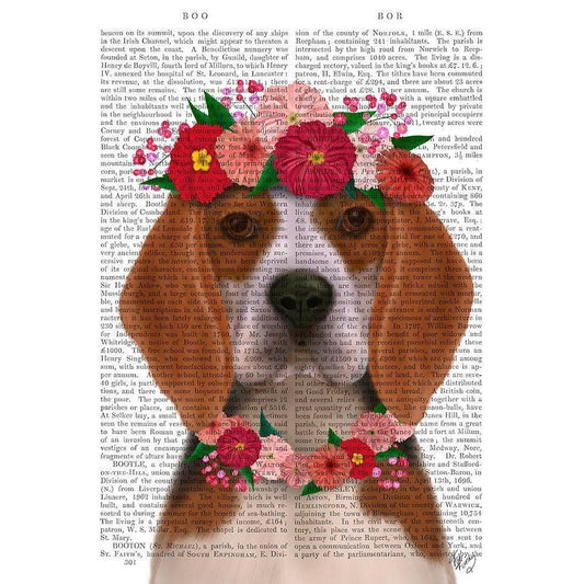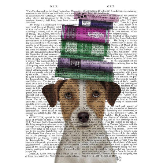 Beagle Flower Headdress Black Modern Wood Framed Art Print with Double Matting by Fab Funky