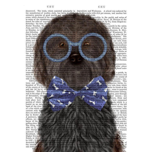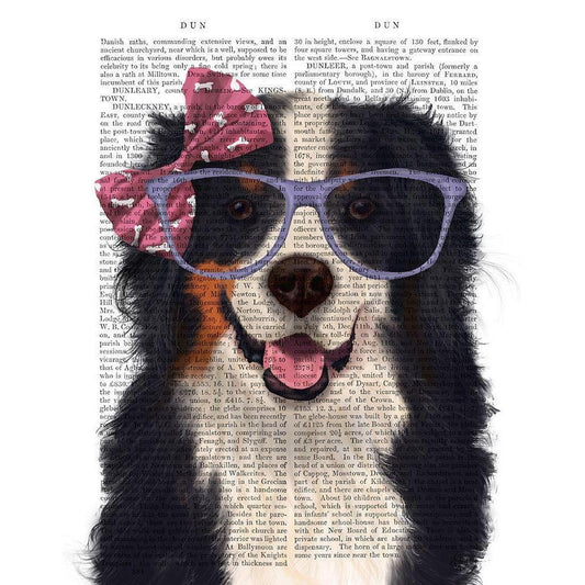 Bernese with Glasses and Bow Black Modern Wood Framed Art Print with Double Matting by Fab Funky