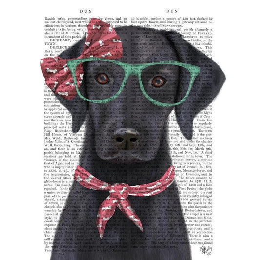 Black Labrador with Glasses and Scarf Black Modern Wood Framed Art Print with Double Matting by Fab Funky