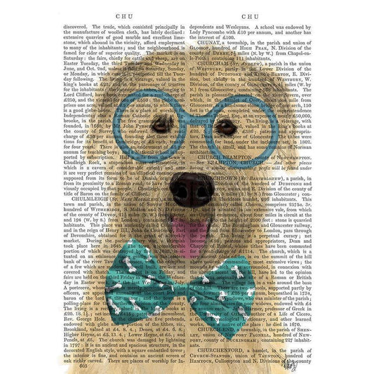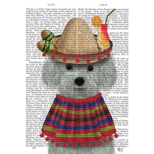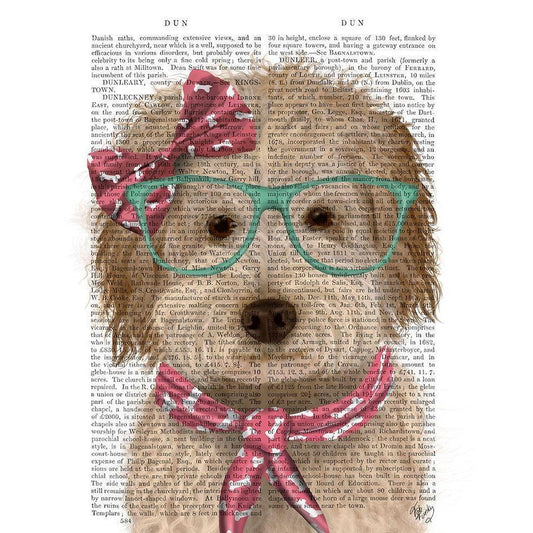 Cockerpoo, Black, with Glasses and Bow Tie Black Modern Wood Framed Art Print with Double Matting by Fab Funky