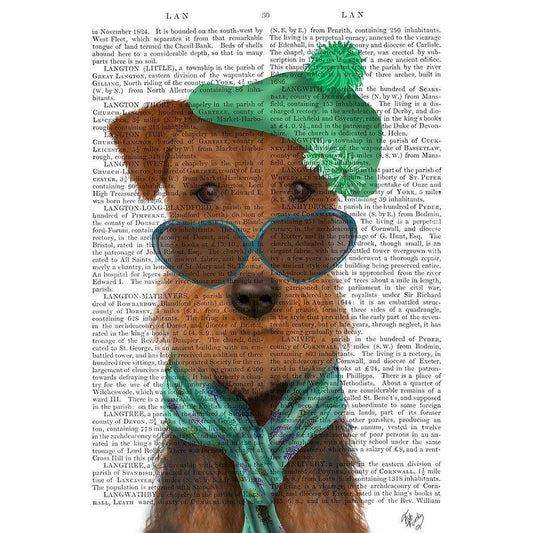 Rottweiler with Glasses and Scarf Black Modern Wood Framed Art Print with Double Matting by Fab Funky