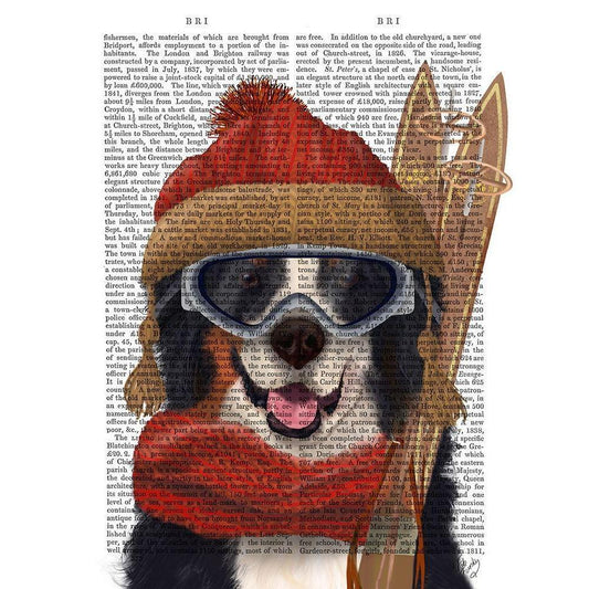 Bernese Ski Dog Black Modern Wood Framed Art Print with Double Matting by Fab Funky