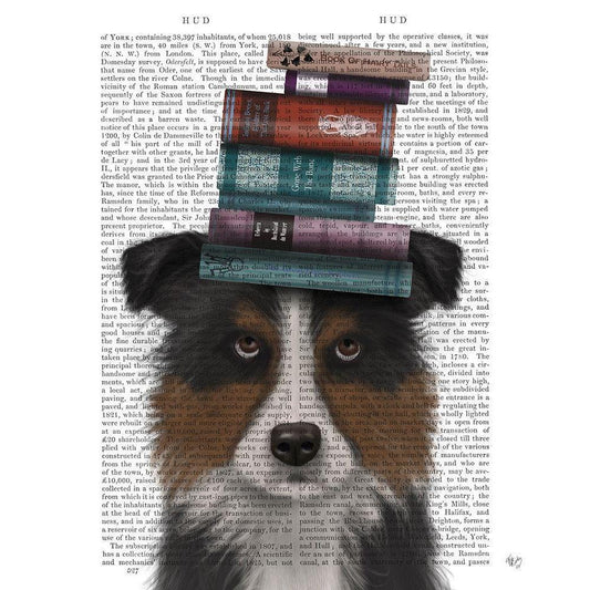 Border Collie, Tricolour, and Books Black Modern Wood Framed Art Print with Double Matting by Fab Funky